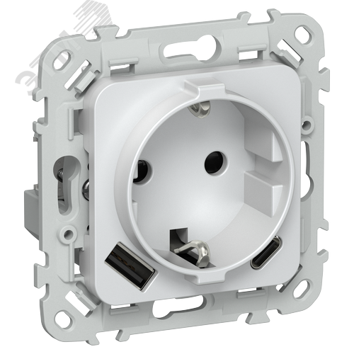 FLITE Розетка 1-местная с заземлением с защитными шторками 16А с USB A+C 20Вт РСЮшс11-0-ФлЖ жемчуг IEK