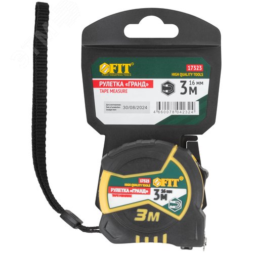 Рулетка ""Гранд"", калибр.лента, нейлон.покр., магн.крючок, двойной стопор, прорезин.корпус 3 м х 16 мм