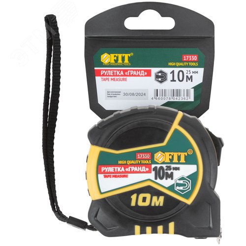 Рулетка ""Гранд"", калибр.лента, нейлон.покр., магн.крючок, двойной стопор, прорезин.корпус 10 м х 25 мм