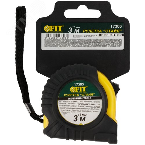 Рулетка Профи, прорезиненный корпус ''Стайл'' 3 м x 16 мм