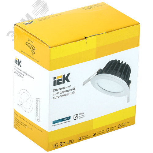 Светильник даунлайт светодиодный встраиваемый ДВО 1820 PRO белый круг 15Вт 4000K IP54
