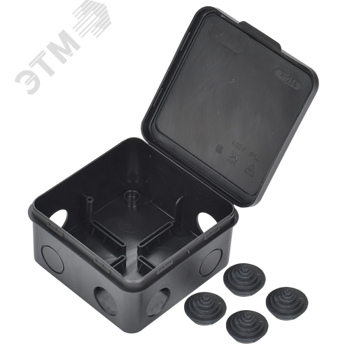 Коробка расп. КМ41256 100х100х50мм о/к IP54 8 вв. черная