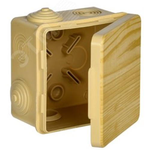 Коробка распределительная КМ 80х80х50мм для наружного монтажа с откидной крышкой  IP54 7 вв. сосна