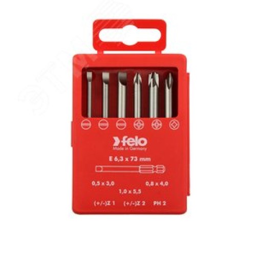 Комплектация Биты 73 мм SL 0,5x3,0 / 0,8x4,0 / 5,5x1,0 / (+/-) Z 1 / (+/-)Z 2 и PH2.