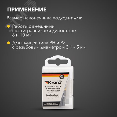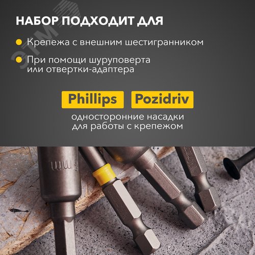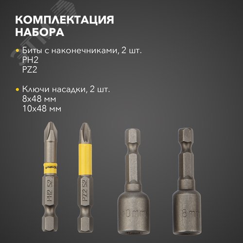 Набор бит и торцевых головок магнитные (PH2, PZ2, 8 мм, 10 мм) длина 50 мм, сталь S2