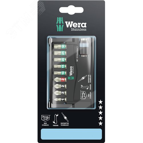 Набор бит с битодержателем Bit-Check 10 Stainless 1 SB нержавеющая сталь 10 предметов с держателем-еврослот