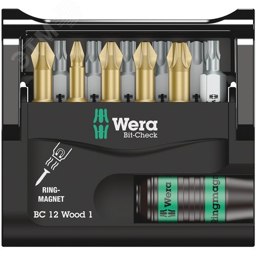 Набор бит с битодержателем Bit-Check 12 Wood 1 для работ по дереву 12 предметов