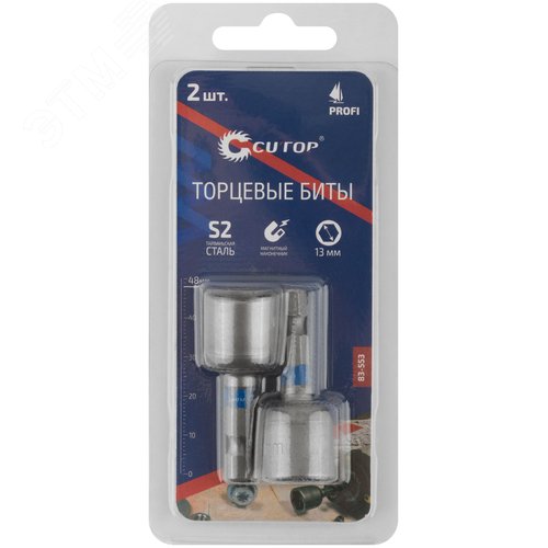 Набор бит с торцевыми магнитными головками 13 мм, 2 шт, Profi, 48 мм