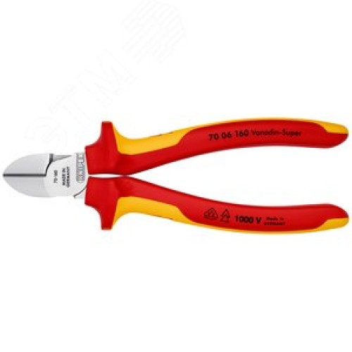 Бокорезы VDE 1000V резка - мягкая проволока 4мм проволока средней твердости 3мм твердая проволока 2мм L=160мм 62HRC диэлкектрические хромированные двухкомпонентные рукоятки