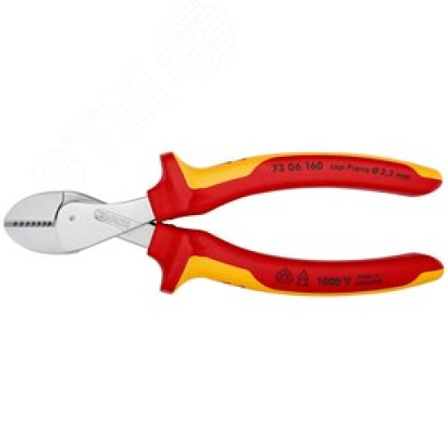 Бокорезы компактные X-CUT VDE 1000V резка - мягкая проволока 48мм проволока средней твердости 38мм твердая проволока 27мм рояльная струна (HRC 59) 22мм L=160мм диэлкектрические хромированные двухкомпонентные рукоятки блистер
