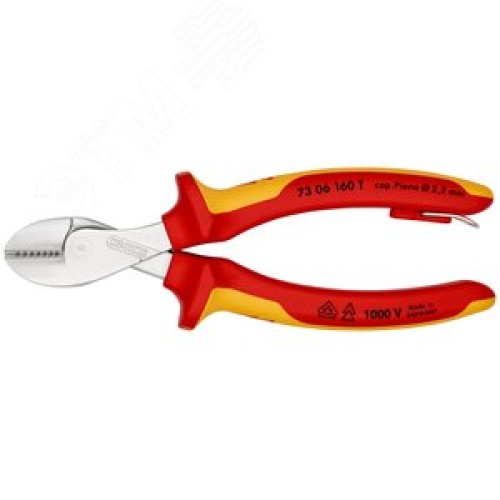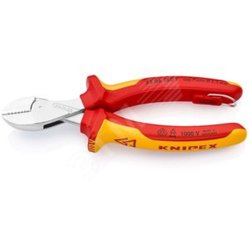 Бокорезы компактные X-CUT VDE 1000V резка - мягкая проволока 48мм средней твердости 38мм твердая 27мм рояльная струна (HRC 59) 22мм L=160мм диэлкектрические хромированные двухкомпонентные рукоятки крепление для страховки