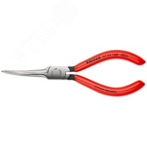 Длинногубцы плоские гладкие губки 55 мм под 45° L-160 мм чёрные обливные рукоятки блистер
