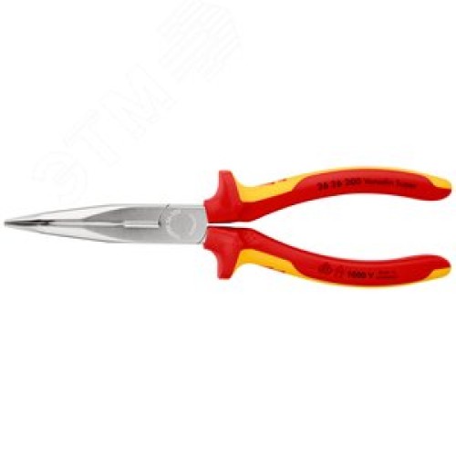 Длинногубцы с режущими кромками VDE 1000V полукруглые губки 40° рез: проволока средней твёрдости 32 мм твёрдая проволока 22 мм L-200 мм диэлектрические хромированные 2-компонентные рукоятки блистер