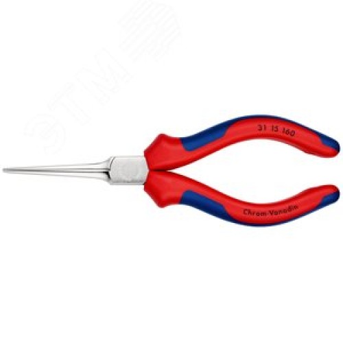 Длинногубцы плоские прямые гладкие губки 55 мм L-160 мм хромированные двукомпонентные рукоятки