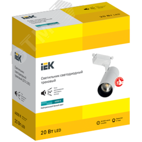 Светильник светодиодный трековый ДТО 1302 20Вт 4000К однофазный 24 град белый
