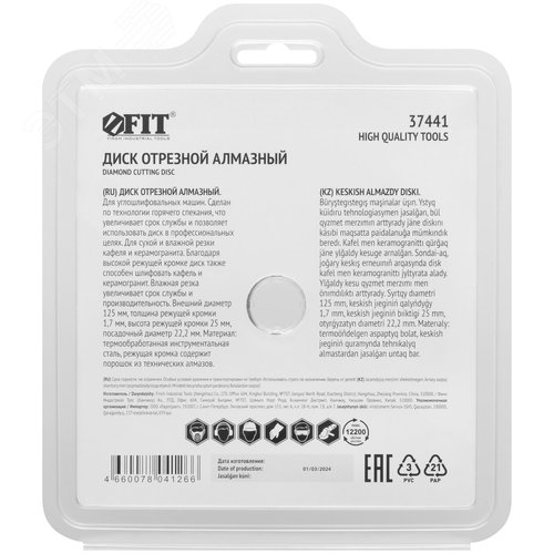 Диск отрезной / шлифовальный алмазный, сухая и влажная резка 125х1,7х25х22,2 мм
