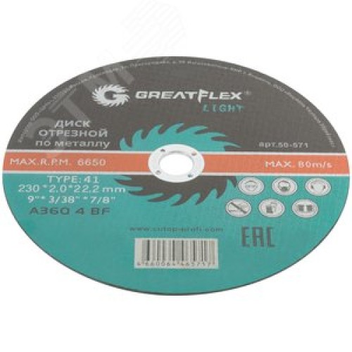 Диск отрезной по металлу T41-230x2.0x22.2 мм, LIGHT