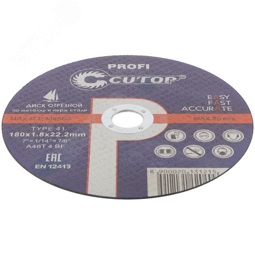 Профессиональный диск отрезной по металлу и нержавеющей стали Cutop Profi Т41-180x1.8x22.2 мм