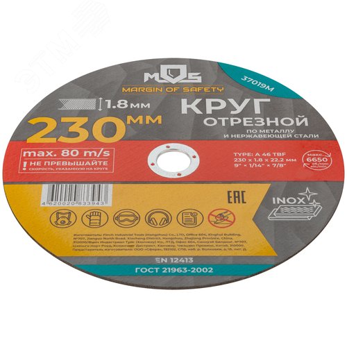 Круг отрезной по металлу , посадочный диаметр 22.2 мм, 230х1.8 мм