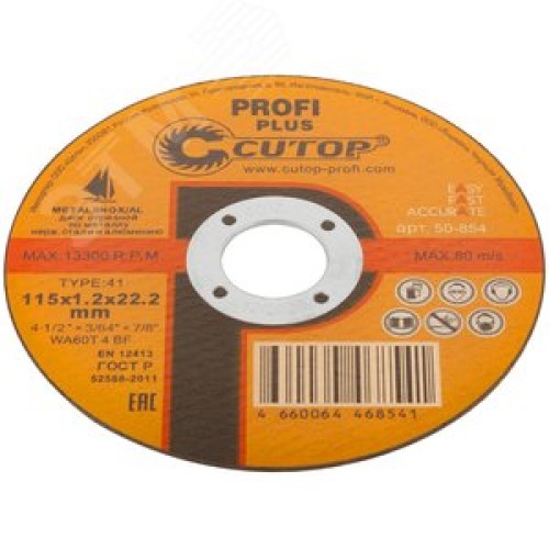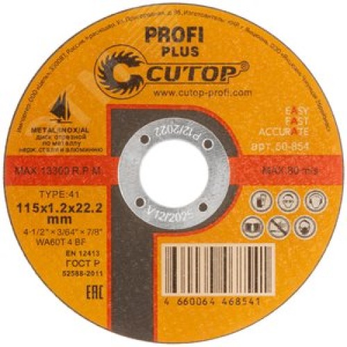 Диск профессиональный отрезной по металлу, нержавеющей стали и алюминию Cutop Profi Plus, T41-115x1,2x22,2 мм