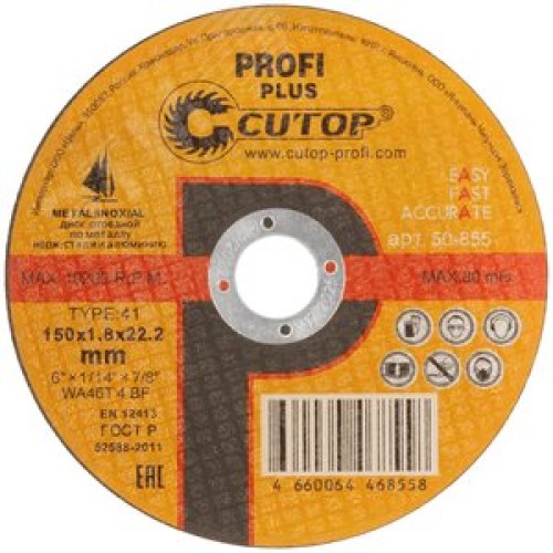 Диск профессиональный отрезной по металлу, нержавеющей стали и алюминию Cutop Profi Plus, Т41-150x1,8x22,2 мм