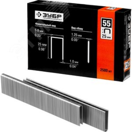 Скобы для степлера тонкие 25 мм, широкие тип 55, 2500 шт