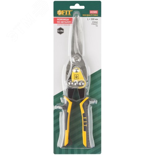 Ножницы по металлу усиленные CrMo Профи, прорезиненные ручки, удлиненные прямые 300 мм