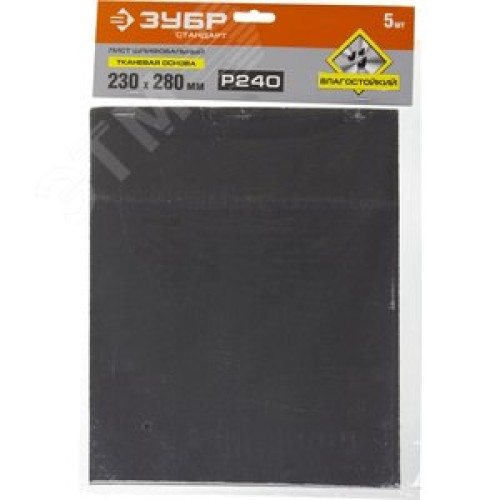 Лист шлифовальный ''СТАНДАРТ'' на тканевой основе, водостойкий 230х280мм, Р240, 5шт