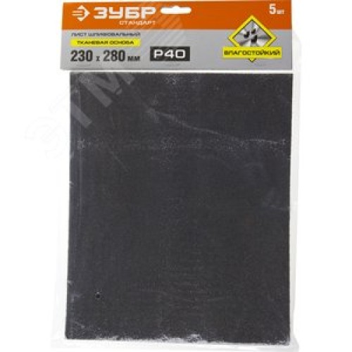 Лист шлифовальный ''СТАНДАРТ'' на тканевой основе, водостойкий 230х280мм, Р40, 5шт