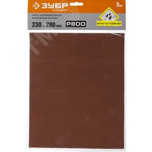Лист шлифовальный ''СТАНДАРТ'' на бумажной основе, водостойкий 230х280мм, Р800, 5шт