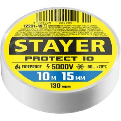 Изолента Protect-10 10м х 15мм 5000В белая