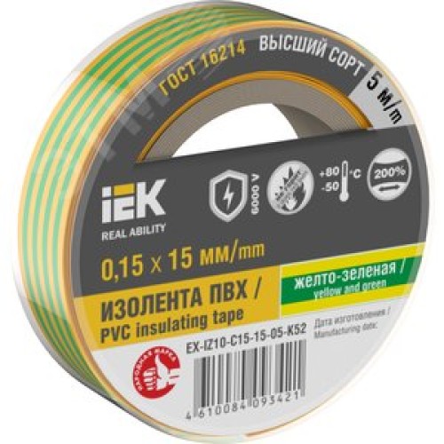 Изолента 0.15х15мм желто-зеленая 5м