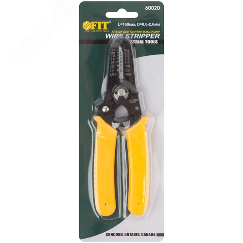 Клещи для снятия изоляции, диаметр проводов 0.6-2.6 мм, Профи, пластиковая ручка 170 мм