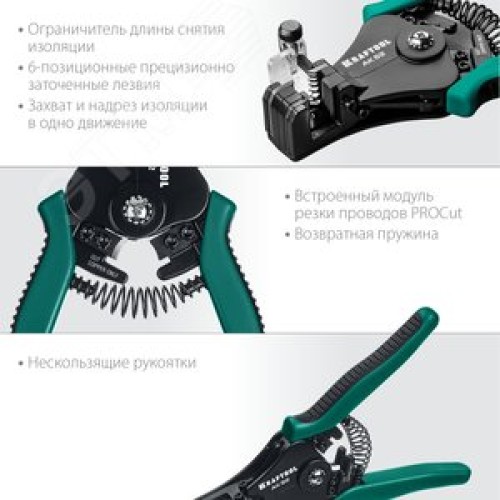 Преимущества "Захват и надрезание изоляции за одно движение. При сжатии рукояток лезвия автоматически раскрываются, удаляя изоляцию без повреждения жил