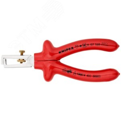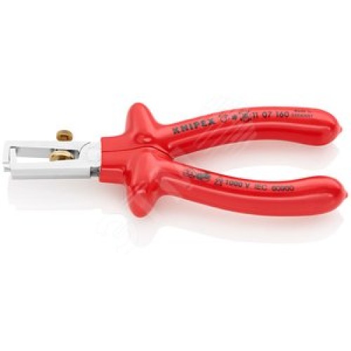 Стриппер VDE 1000V для одно- много- и тонкожильного кабеля зачистка: 5 мм (10 мм AWG 7) с пружиной L-160 мм диэлектрический регулировочный винт для настройки хромированный обливные рукоятки