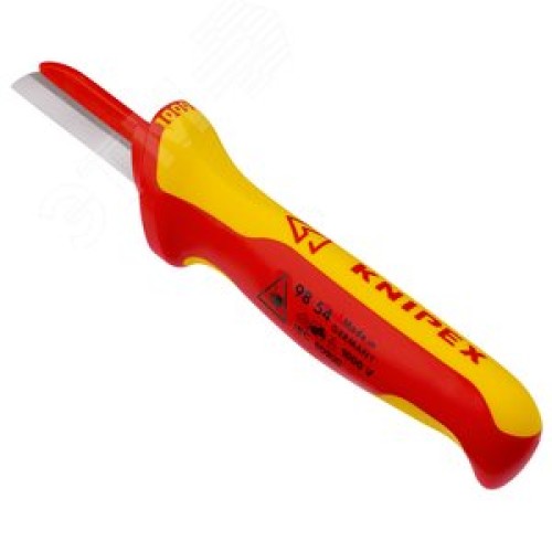 Нож для кабеля VDE 1000V пластиковый обух на лезвии для предупреждения КЗ L-190 мм диэлектрический 2-компонентная рукоятка