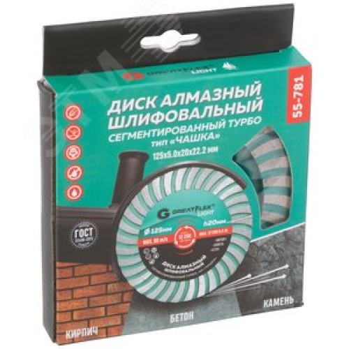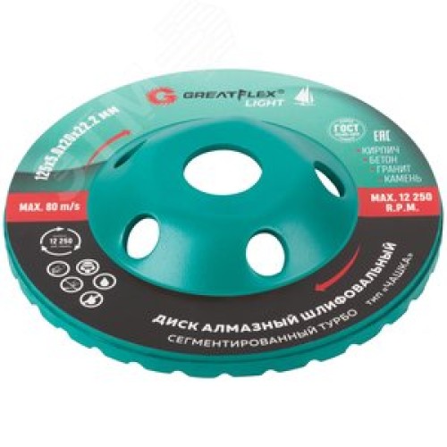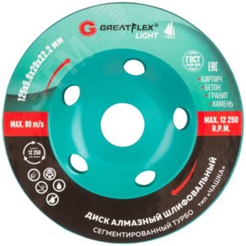Алмазный шлифовальный диск ''Чашка'', сегментированный турбо, GreatFlex Light, 125X5.0X20X22.2 мм