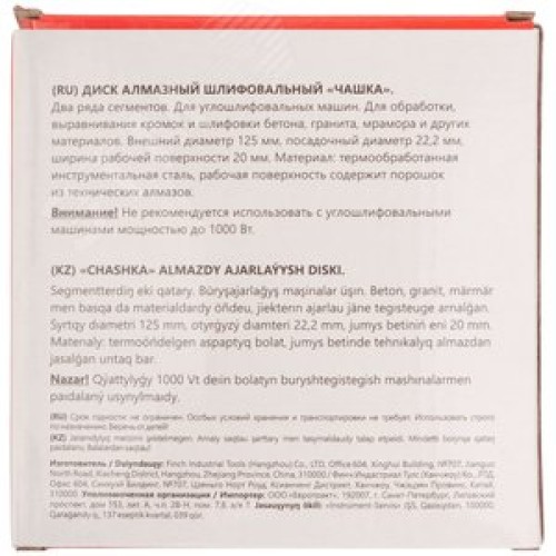 Диск алмазный шлифовальный, посадочный диаметр 22.2 мм, сегментный, двойной ряд 125 мм