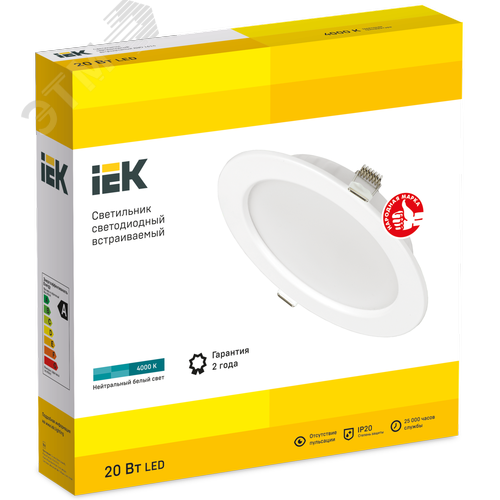 Светильник декоративный светодиодный LED встраиваемый ДВО 1614 белый круг 20Вт 4000К IP20