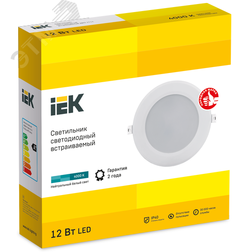 Светильник декоративный светодиодный LED встраиваемый ДВО 1714 белый круг 12Вт 4000К IP40