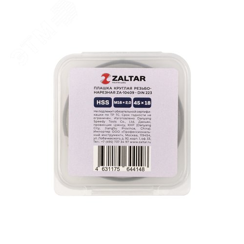 Плашка круглая резьбонарезная HSS, DIN 223 B (DIN EN 22568), M16x2.0, 45x18
