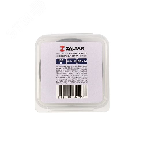 Плашка круглая резьбонарезная HSS-E, DIN 223 B (DIN EN 22568), M12x1.75, 38x14