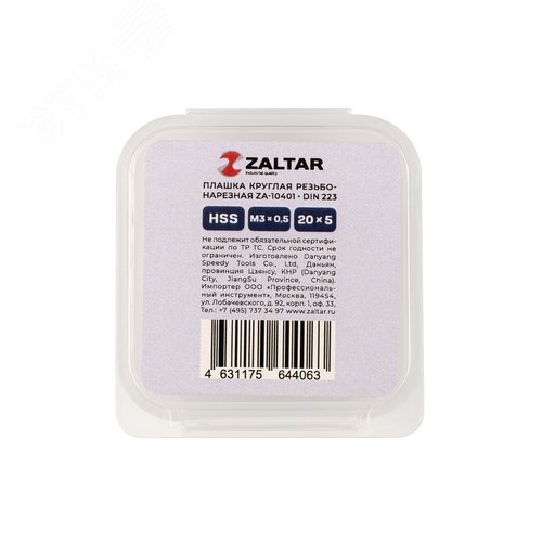 Плашка круглая резьбонарезная HSS, DIN 223 B (DIN EN 22568), M3x0.5, 20x5