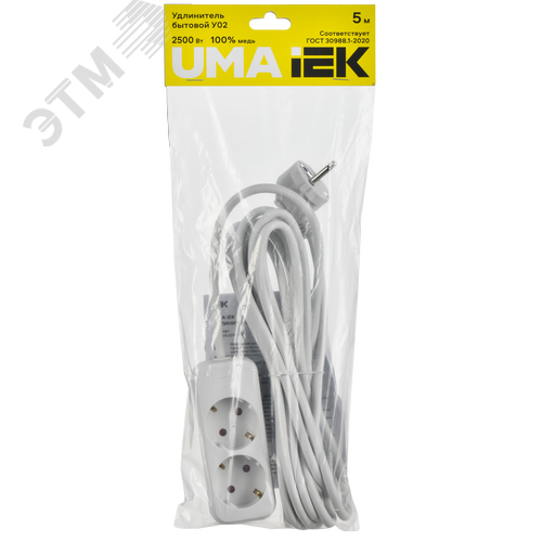 Удлинитель UMA У02 2 места 2P+PE 5м 3х1мм2 10А белый