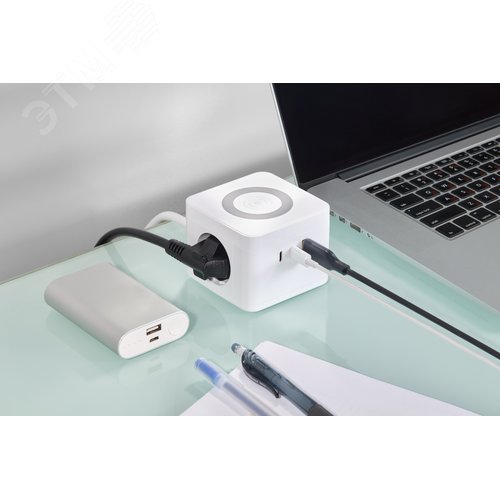 DOMINIC Удлинитель с беспроводной зарядкой 10Вт У02К 2 места 2P+PE 1,3м 3х1,0мм2 16А/250В USB A+C белый IEK