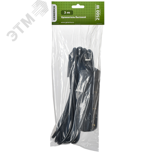 Удлинитель У03 3 места с заземлением 3м 3х1мм2 10А 250В черный GENERICA