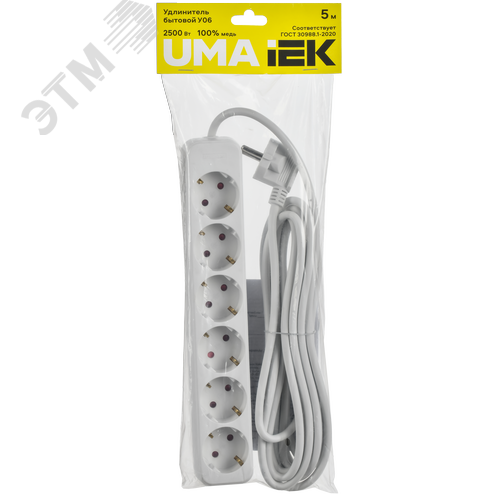 Удлинитель UMA У06 6 мест 2P+PE 5м 3х1мм2 10А белый