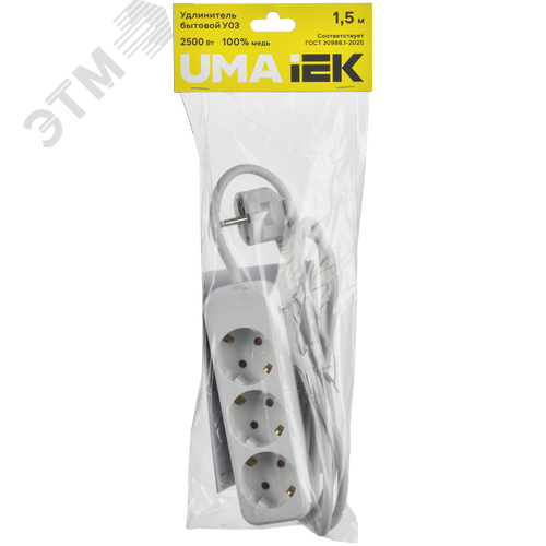 Удлинитель UMA У03 3 места 2P+PE 1,5м 3х1мм2 10А белый