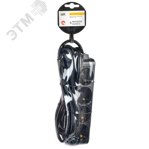 Удлинитель У04 4 места с заземлением 5м 3х1мм2 16А 250В черный