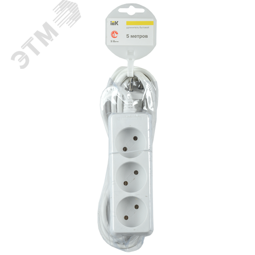 Удлинитель бытовой 3 розетки шнур 5м без заземления 10А